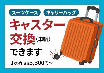 - スーツケース・キャリーバッグのキャスター交換もおまかせください