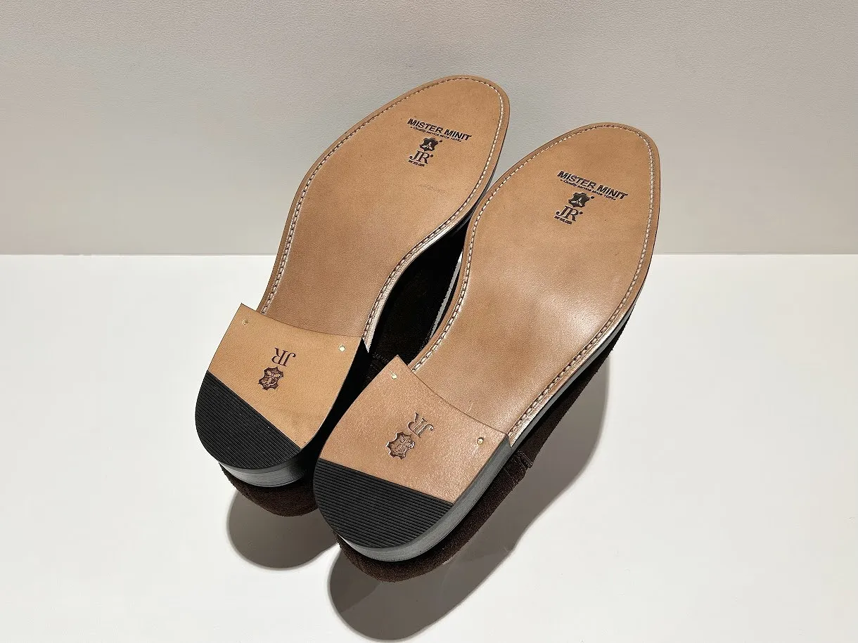 - 消臭除菌効果のあるオゾンを発生させた乾燥庫に入れ清潔な状態にした後、カラーリング補修をしています。つま先の変色は色が抜けてしまっていたので、クリームのお手入れではなくカラーリング修理になりました。また、カラーリングする事で質感が少しツルっとした仕上がりに変わる革だったので、ご説明した上で修理をいたしました。