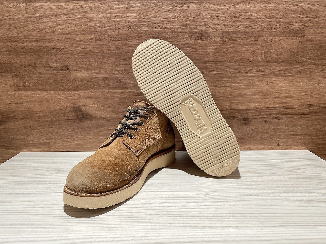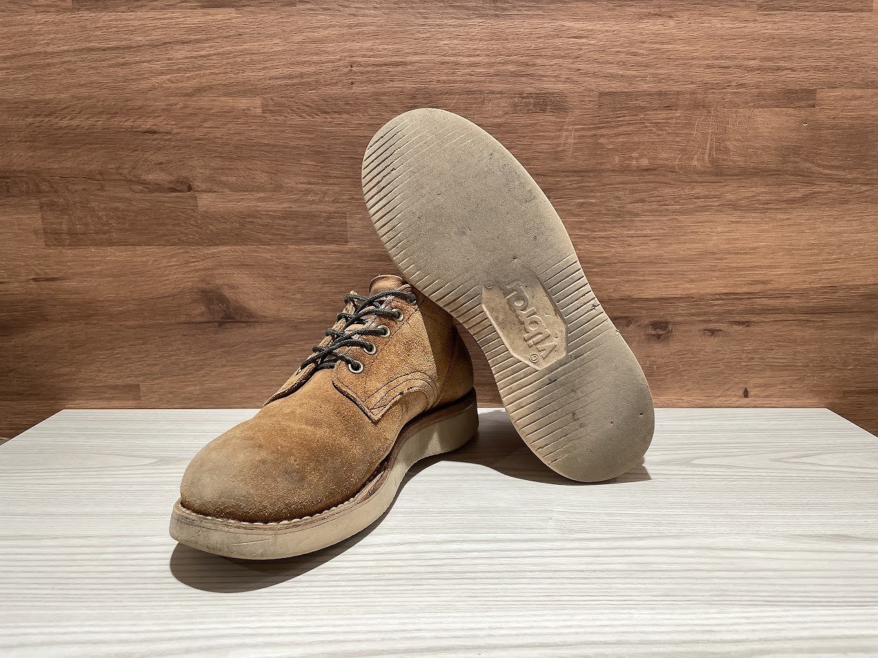 - ムラ染加工の紳士靴カラーリングのご依頼です。下処理後、自然なムラ感を残しながら染料を吹き付けて靴全体のバランスが整えます。その後、つま先に濃い色の染料を少しづつ吹き付けながら、グラデーションを再現していきます。濃淡をつけながらバランスを整えるのが非常に難しい職人技の作業で、濃すぎたりバランスを間違えると靴の見た目が大きく損なわれてしまいます。慎重に何度も塗り重ねながら調整します。底面にかけて陰影をつけることで、より靴の立体感が際立ち、カッコいい仕上がりになりました。
