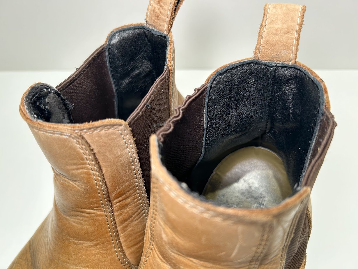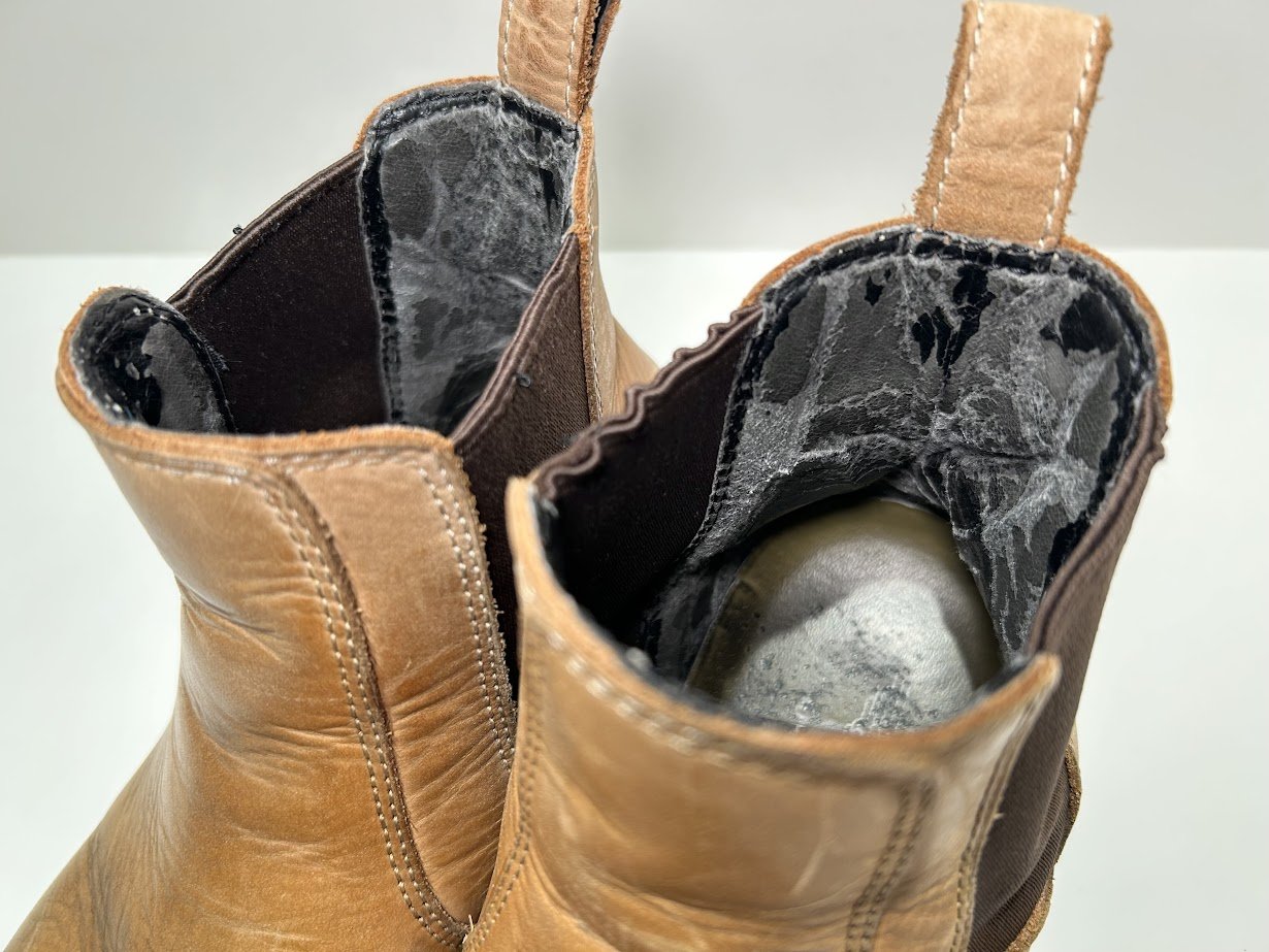 - 革靴表面が破れ・裂け目を補修する修理です。方法は2つあり、内側から革を当てる修理方法と、表側から革を当てて修理する方法(チャールズパッチ)をご提案しました。内側から革を当てる方法は縫い目だけが表に出ます。一方、チャールズパッチは前者よりも強度がありますが、表側に革を当てるため前者よりも修理の跡が見えます。今回はチャールズパッチの方法をお選びいただきましたが、できるだけ目立たないように修理いたしました。
