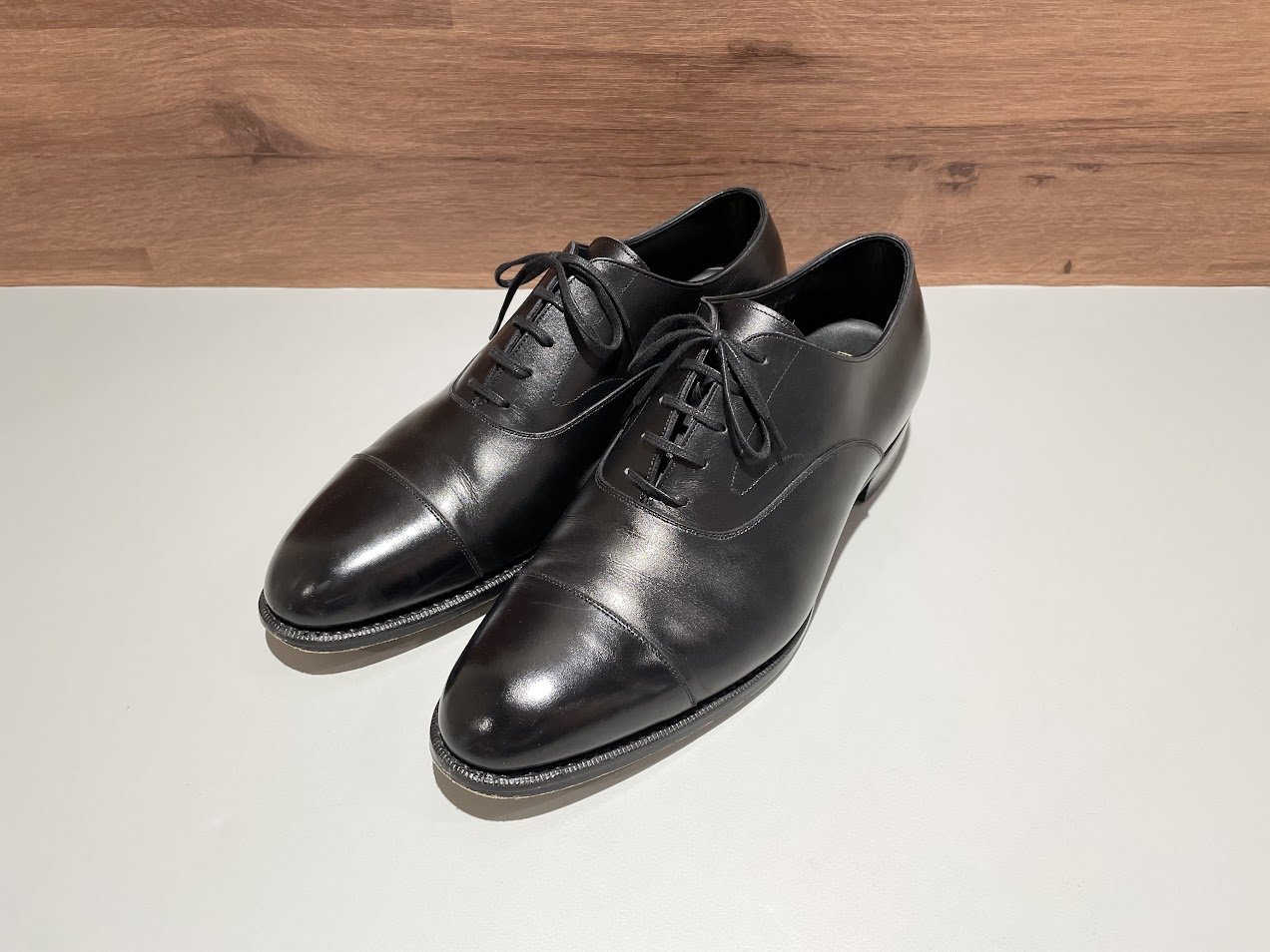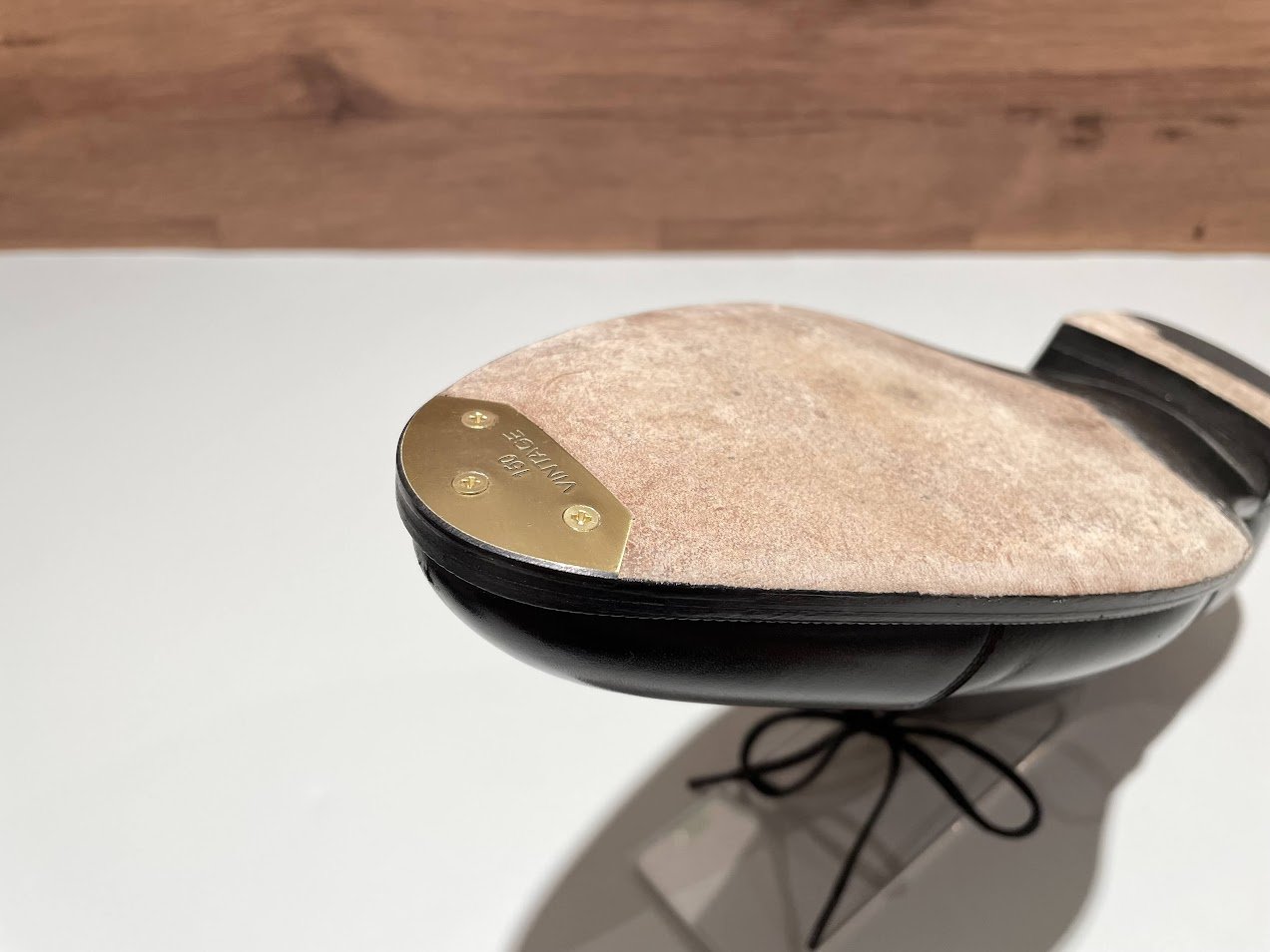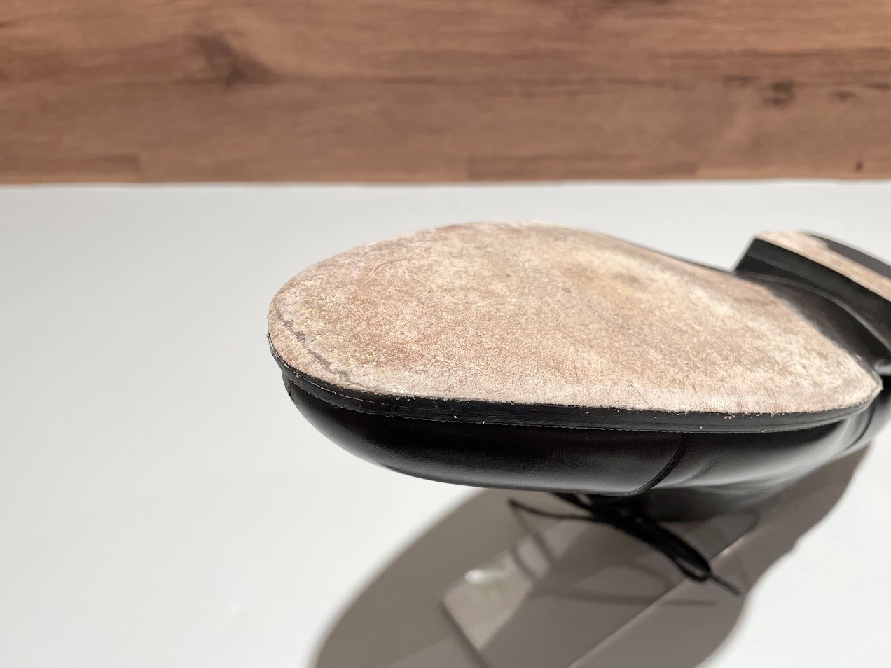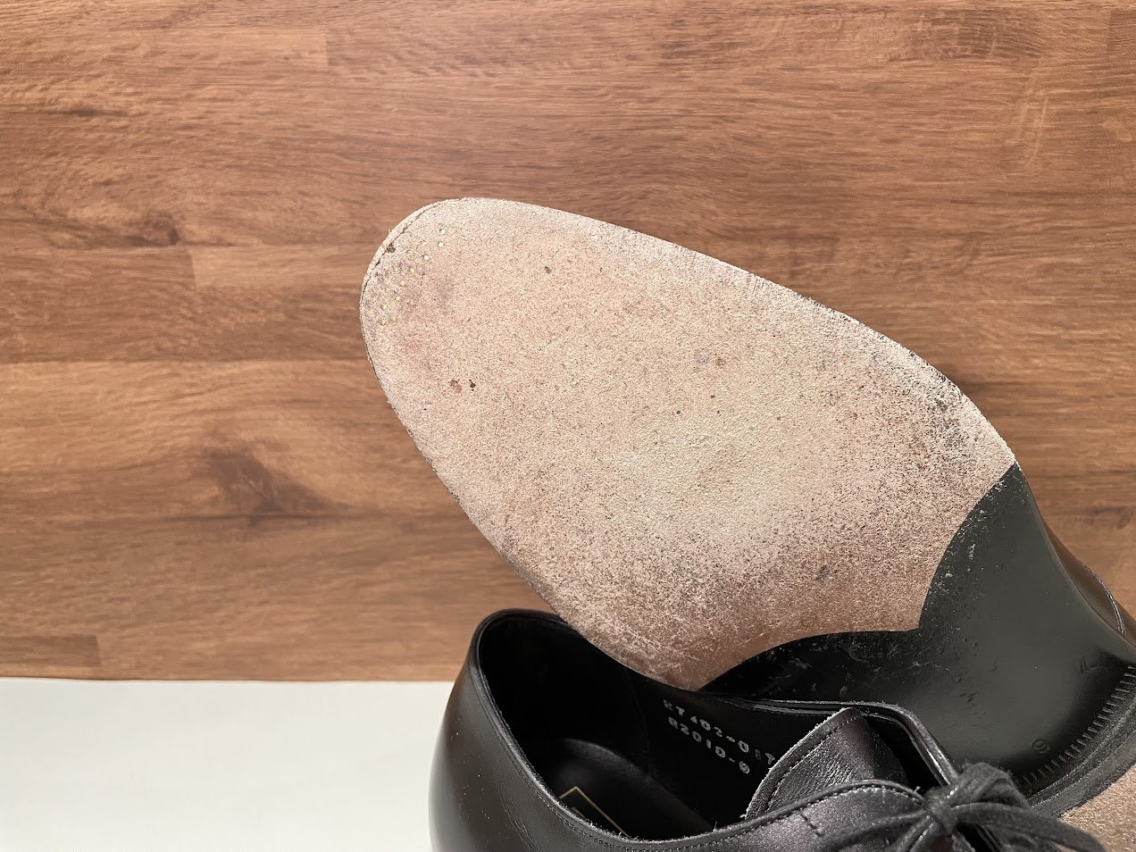 - つま先修理(トゥスト)は強度のあるラバーで修理するのが一般的ですが、こだわりの一足にはスチール(トゥスチール)で補強することもできます。ゴールドとシルバーがあります。
