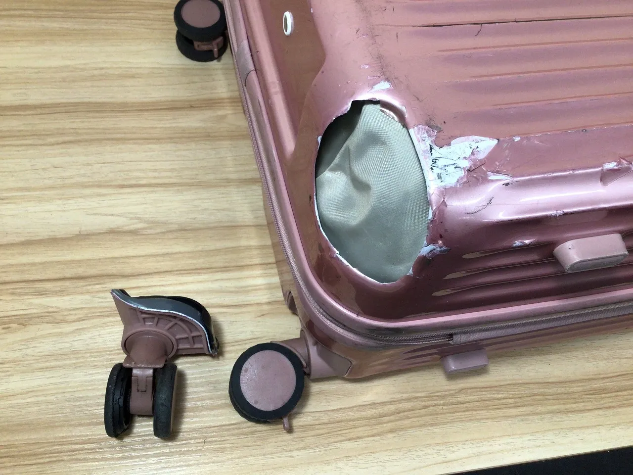 飛行機の荷物預けで破損されたそうです。ミスターミニットでは保険をご利用される場合のお見積りを作成いたします。お気軽にお問い合わせください。