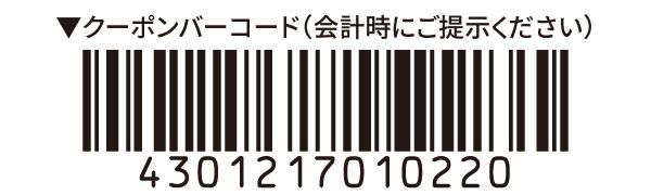 | ご利用方法 | このクーポンを印刷してお持ちいただくか、スマートフォンでこの画面を提示してください。 |
