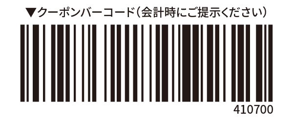 | ご利用方法 | このクーポンを印刷してお持ちいただくか、スマートフォンでこの画面を提示してください。 |