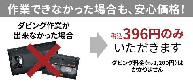 お預かりしたテープに画像(または音声)が入っていないなどの理由で作業できなかった場合は、税込396円いただきます。