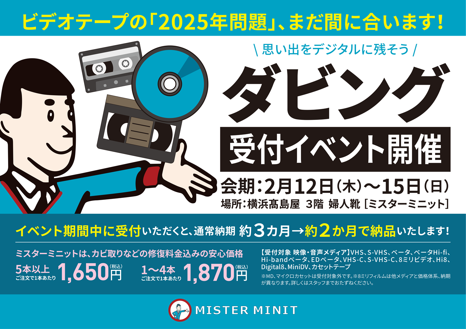 - \思い出をデジタル化/ダビング受付イベント開催(2/12-2/15)